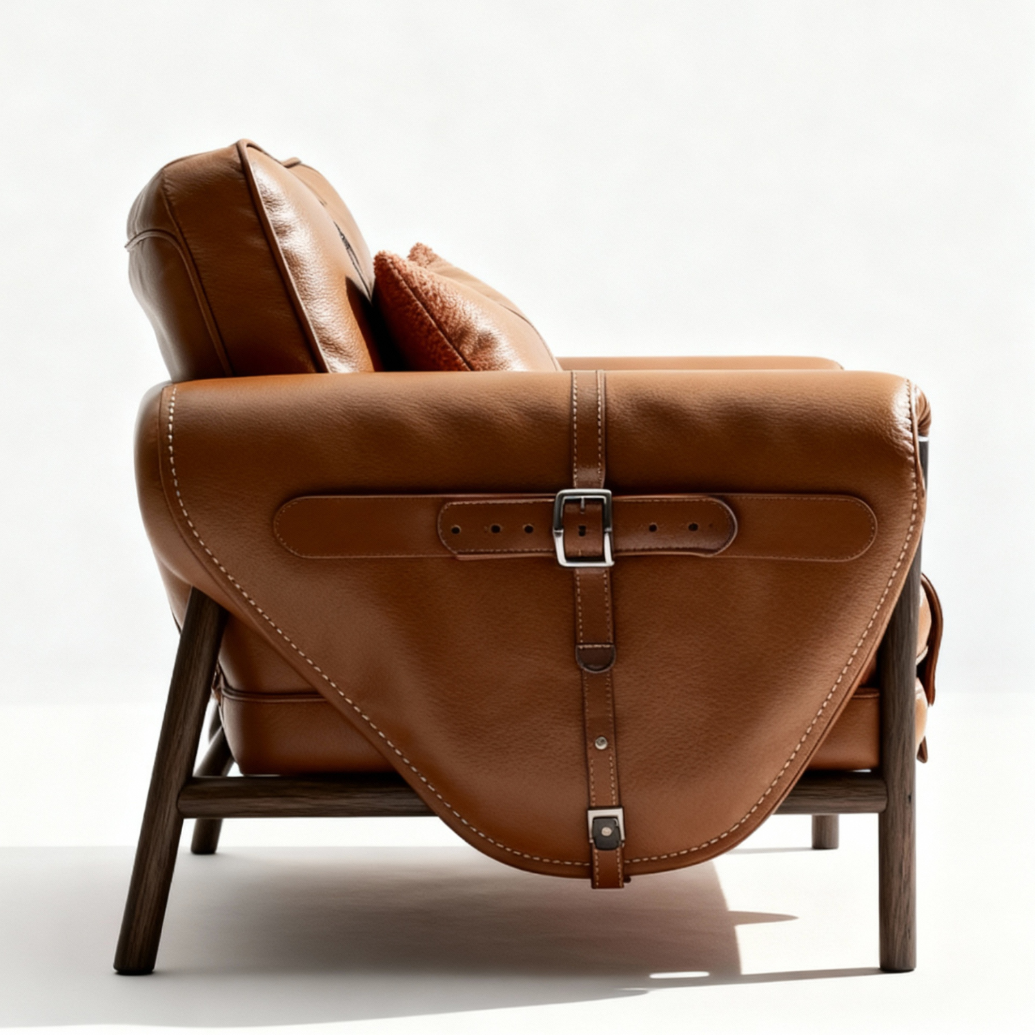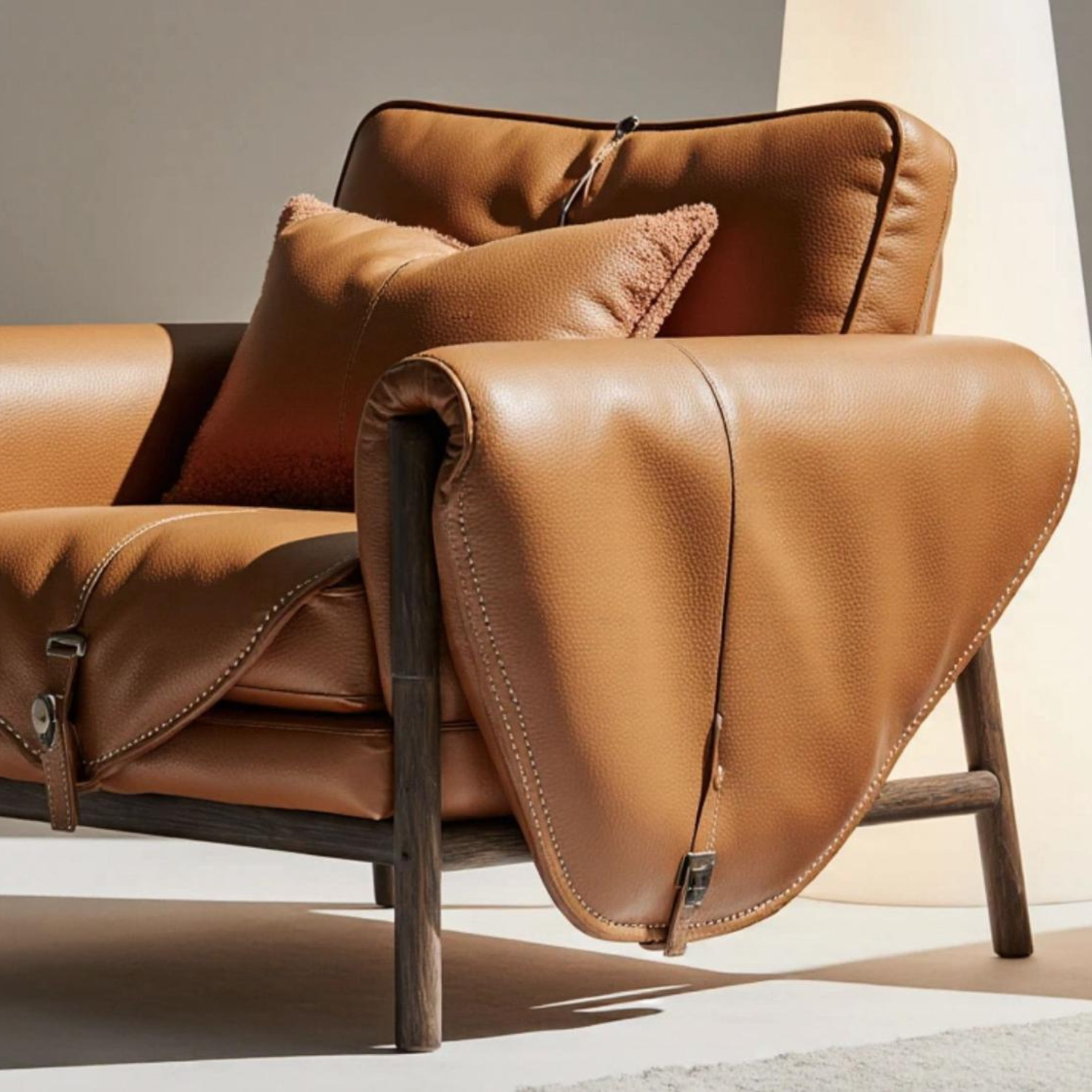 Wrapped in supple full-grain leather and grounded by a solid wood structure, NEO is defined by its quiet confidence. The leather drapes naturally over the frame, secured with refined detailing that celebrates both strength and softness. Over time, the surface evolves, developing a rich patina shaped by touch, light, and use — making every piece uniquely yours.